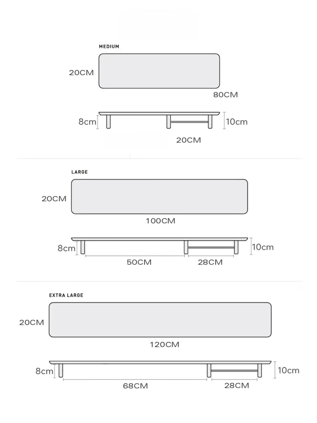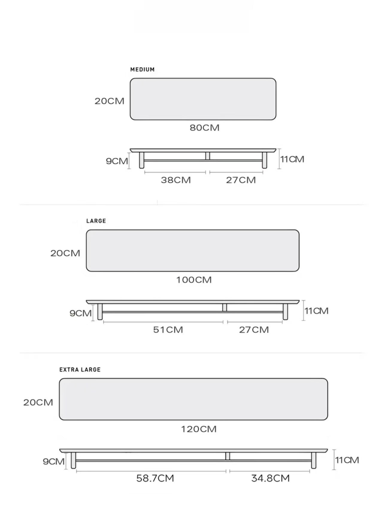 책상 선반은 여러 기기와 모니터를 지지하도록 설계되었습니다. 아래 치수를 확인하여 사용 환경에 적합한지 확인하세요. 책상.